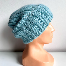 Ręcznie robiona czapka beanie AUREA 100% Baby Merino plus moher i jedwab 43/08 Jasny Morski