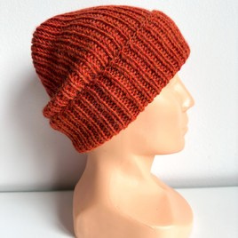 Czapka wywijana zrobiona ręcznie na drutach KIARA 100% Alpaka 2925 Rdza