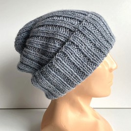 Czapka wywijana zrobiona ręcznie na drutach LAURIN 100% Alpaka 9021 Mgła