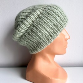 Ręcznie robiona Czapka wywijana MARGARET 100% Alpaka + nitka moher i jedwab 9030/47 Lody Pistacjowe