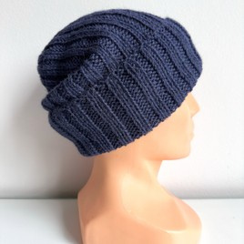 Ręcznie robiona Czapka wywijana LAURIN Melanż 100% Alpaka 4305/100 Ciemny Indygo