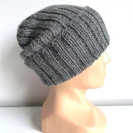 Czapka wywijana zrobiona ręcznie na drutach LAURIN 100% Alpaka 9021 Mgła