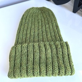 Wywijana czapka merino HELLI 100% Baby Merino 38 Oliwka