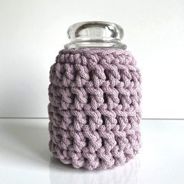 Ręcznie robiony Sweterek na świecę ze sznurka bawełnianego 310 wrzosowy