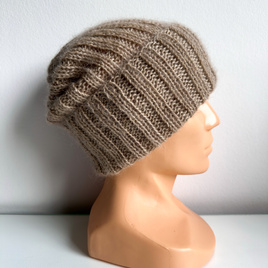 Ręcznie robiona czapka damska MORGANA Merynos, Alpaka z Jedwabiem 59/40 Marcepan