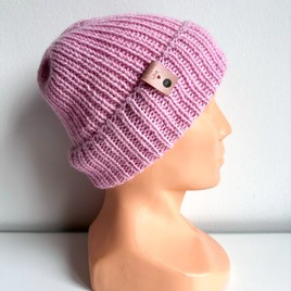 Czapka wywijana zrobiona ręcznie na drutach KIARA 100% Alpaka 3140 Jasny Róż