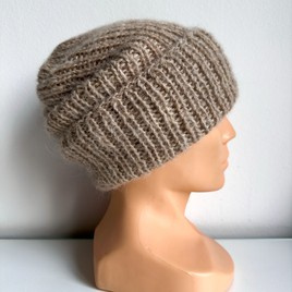 Ręcznie robiona czapka damska MORGANA Alpaka z Jedwabiem 2020/04 Jasny Nugat