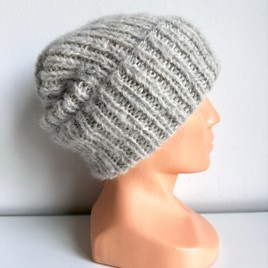 Ręcznie robiona czapka damska MORGANA Alpaka z Jedwabiem 501/02 Jasny Szary