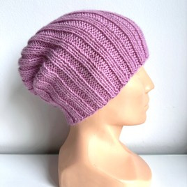 Ręcznie robiona Czapka wywijana LAURIN 100% Alpaka 4010 Jasna Lawenda