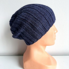Czapka wywijana zrobiona ręcznie na drutach KIARA 100% Alpaka 4305 Ciemne Indygo