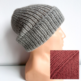 Czapka wywijana zrobiona ręcznie na drutach KIARA 100% Alpaka 9041 miedziany brąz