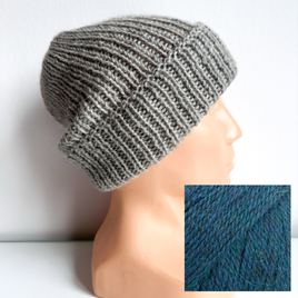Czapka wywijana zrobiona ręcznie na drutach KIARA 100% Alpaka 7240 niebieski petrol