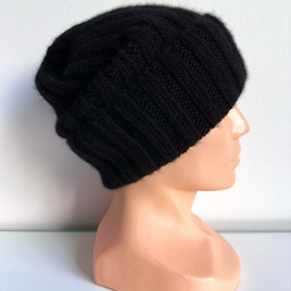 Czapka wywijana zrobiona ręcznie na drutach KIARA 100% Alpaka 8903 Czarny