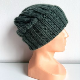 Czapka wywijana zrobiona ręcznie na drutach KIARA 100% Alpaka 506 Ciemny Szary