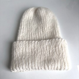 Ciepła czapka ręcznie robiona wywijana CHMURKA Alpaka 01 Ecru