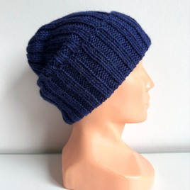 Ręcznie robiona Czapka wywijana LAURIN 100% Alpaka 4305 Ciemny Indygo