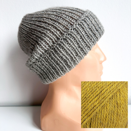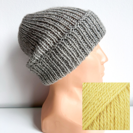 Czapka wywijana zrobiona ręcznie na drutach KIARA 100% Alpaka 9028 tarta cytrynowa