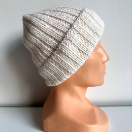 Ręcznie robiona Czapka wywijana LAURIN 100% Alpaka 101 Biały