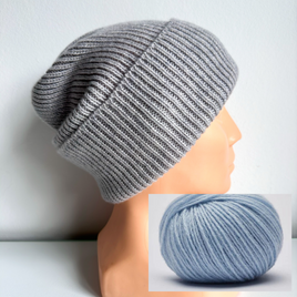 Handmade Czapka damska SOPHIA 100% Baby Merino plus moher i jedwab 43/44 Jasny Morski