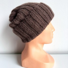 Czapka wywijana zrobiona ręcznie na drutach KIARA 100% Alpaka 506 Ciemny Szary