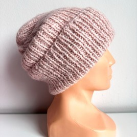 Ręcznie robiona czapka damska MORGANA Alpaka z Jedwabiem 9034/31 Płatek Róży