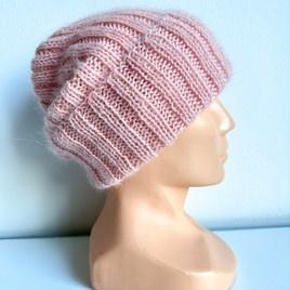 Ręcznie robiona czapka damska MORGANA Alpaka z Jedwabiem 3112/12 Różowy