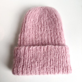Ręcznie robiona czapka beanie AUREA 100% Baby Merino plus moher i jedwab 25/11 Lawenda