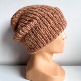 Ręcznie robiona czapka damska MORGANA Merynos, Alpaka z Jedwabiem 59/40 Marcepan