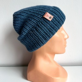 Ręcznie robiona czapka beanie AUREA 100% Baby Merino plus moher i jedwab 13/28 Granatowy