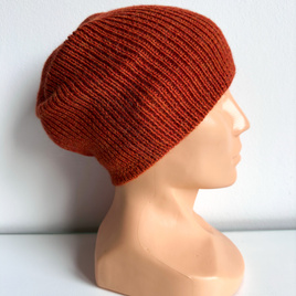 Czapka wywijana zrobiona ręcznie na drutach KIARA 100% Alpaka 2925 Rdza