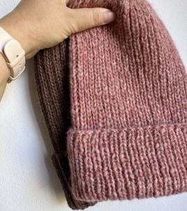 Ciepła czapka ręcznie robiona wywijana CHMURKA Alpaka 34 Różowy Marmur