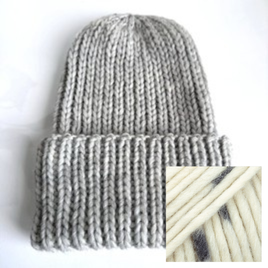 Ręcznie robiona czapka wywijana JANKA 100% Wełna owcza 01 ecru