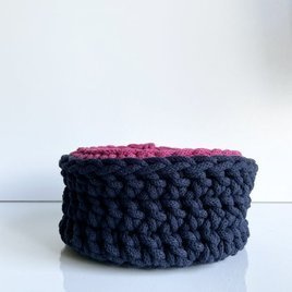 ( Anzahl der Produkte: 7 )Koszyk ze sznurka bawełnianego granat 850 z fuksją 360 16x9 cm