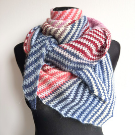 Chusta trójkątna ręcznie zrobiona na drutach. Fioletowo-szara Ombre