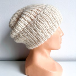 DAISY – czapka beanie handmade baby merino + moher i jedwab 114 Wanilia