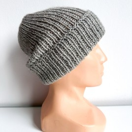 Ciepła czapka ręcznie robiona wywijana CHMURKA Alpaka 04 średni szary