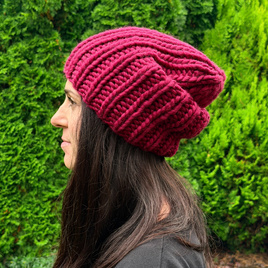 Ręcznie robiona, wywijana Czapka moherowa z jedwabiem Malinowy