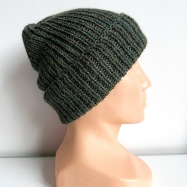 Czapka wywijana zrobiona ręcznie LAURIN 100% Alpaka 7895 Ciemnozielony