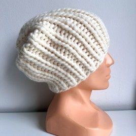 Czapka wywijana zrobiona ręcznie na drutach KIARA 100% Alpaka 100 Ecru