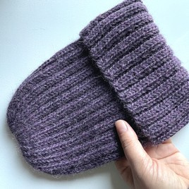 Czapka wywijana wykonana ręcznie na drutach KIARA 100% Alpaka 4400 Ciemno Fioletowy