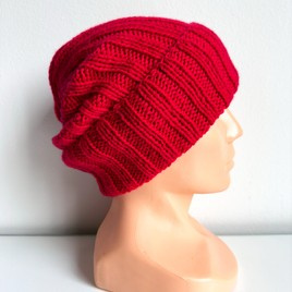 Ręcznie robiona czapka damska MORGANA Merynos, Alpaka z Jedwabiem 08/18 Fuksja