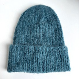Ciepła czapka ręcznie robiona wywijana CHMURKA Alpaka 45 Morze Północne