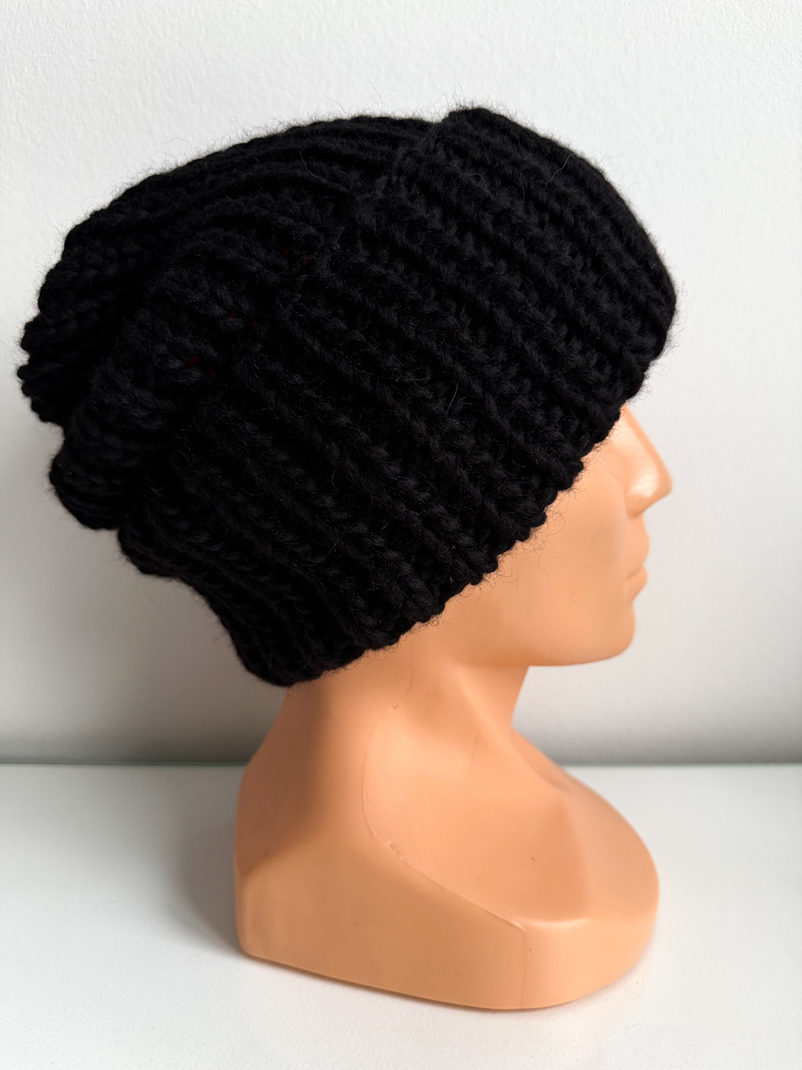 Ręcznie robiona czapka wywijana JANKA 100% Wełna owcza 02 Czarny