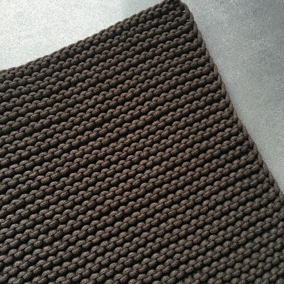 Dywan ze sznurka bawełnianego wykonany na drutach. Idealny do każdego rodzaju wnętrz. Do salonu, do pokoju dziecięcego, do łazienki (świetnie wchłania wodę).