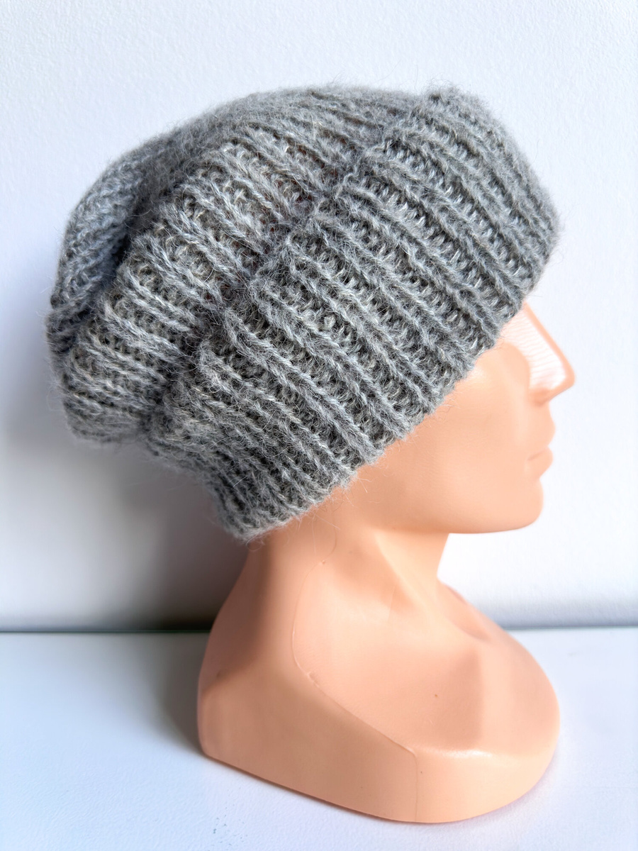 MORGANA to czapka z wywinięciem i lekkim efektem oversize, wykonana ręcznie na drutach pojedynczym ściągaczem. Ściągacz sprawia, że czapka dobrze trzyma się głowy, ale nie tworzy sztywnego „hełmu” – układa się miękko, z delikatnym luzem w górnej części. Wywinięcie dodaje warstwy nad uszami i czołem, co w praktyce wzmacnia ochronę przed chłodem i wiatrem, bez nadmiernego dociśnięcia. Ten krój będzie odpowiedni, jeśli nie lubisz bardzo opiętych czapek, ale jednocześnie chcesz, by czapka nie zsuwała się podczas ruchu.
