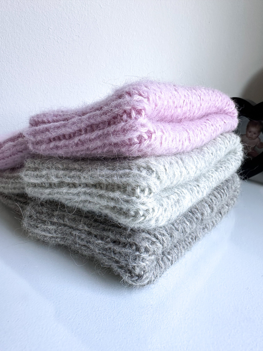 - Ręczne wykonanie na drutach – każda sztuka może minimalnie różnić się ułożeniem włosa czy elastycznością, co jest naturalnym efektem pracy ręcznej.