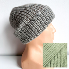 Czapka wywijana zrobiona ręcznie na drutach KIARA 100% Alpaka 9038 zielona szałwia