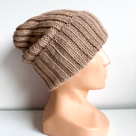 Czapka wywijana zrobiona ręcznie LAURIN 100% Alpaka 302 Camel