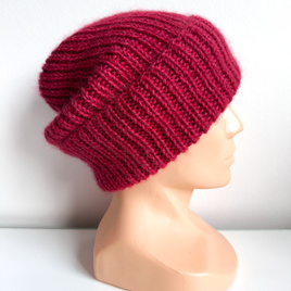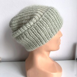 Ręcznie robiona Czapka wywijana MARGARET 100% Alpaka + nitka moher i jedwab 9030/47 Lody Pistacjowe
